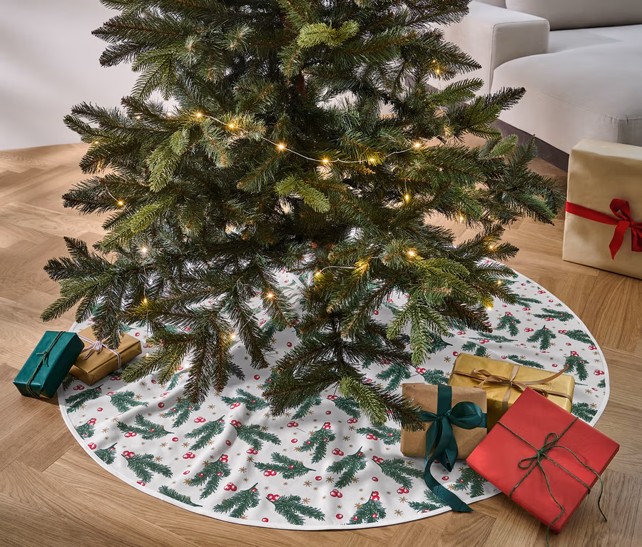 • Zakrywa stojak choinkowy, przewody itp. oraz ułatwia zbieranie opadłych igieł