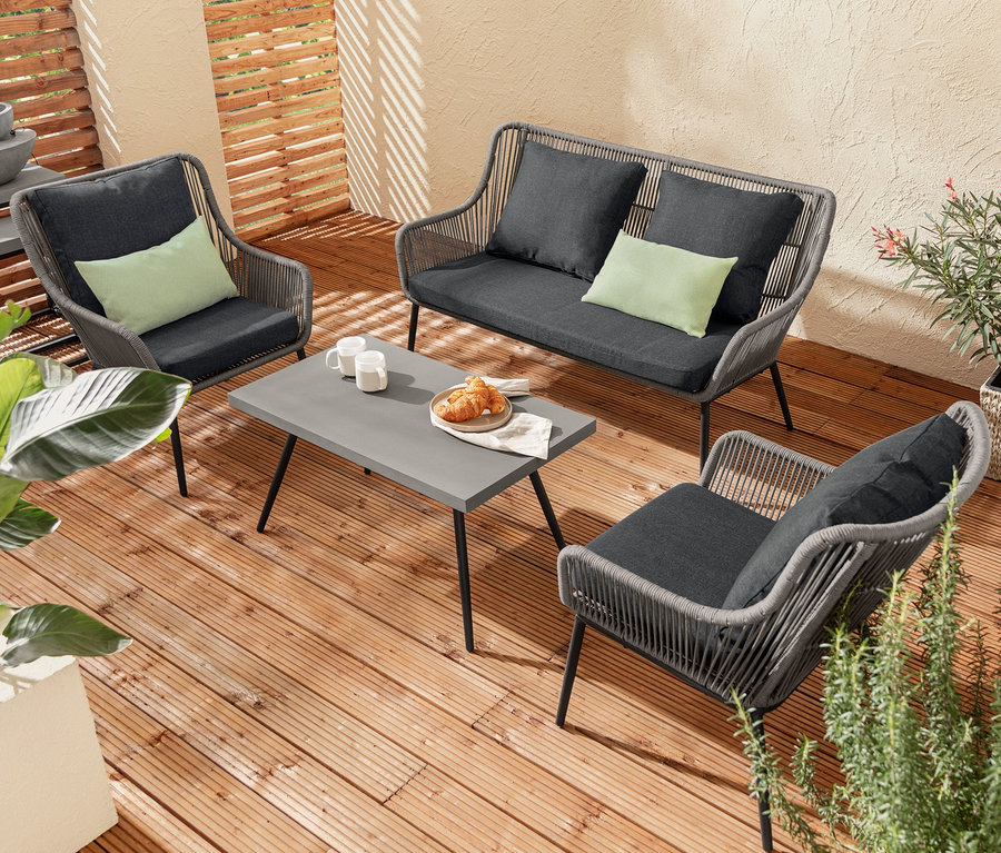 • Blat wykonany z odpornego na warunki atmosferyczne i łatwego w pielęgnacji policementu