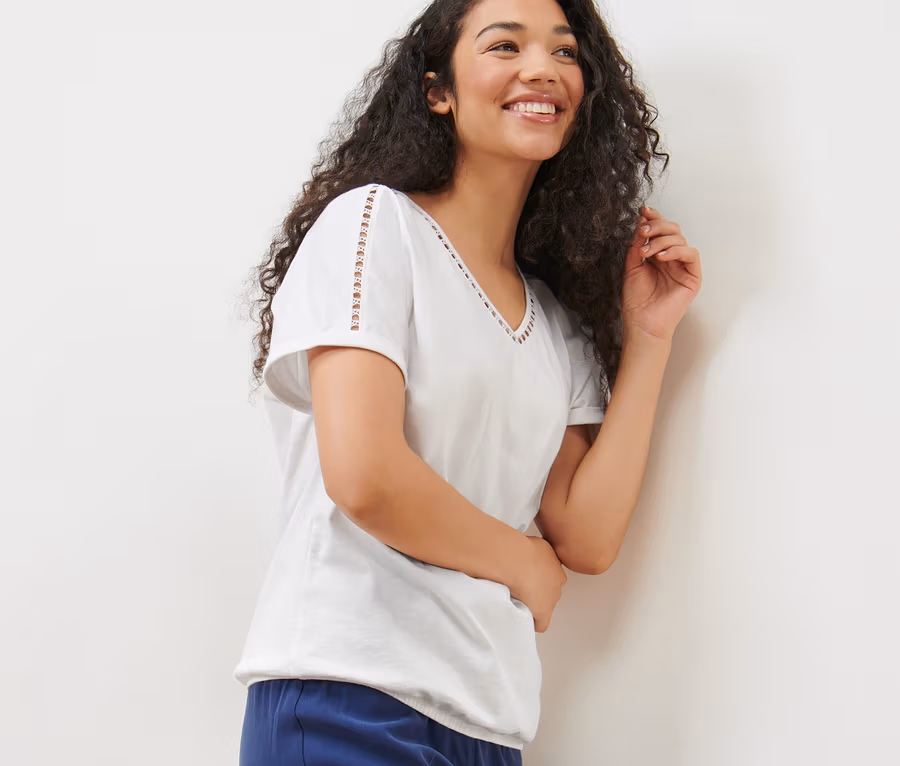 Bluzka z taśmą szydełkową, biała