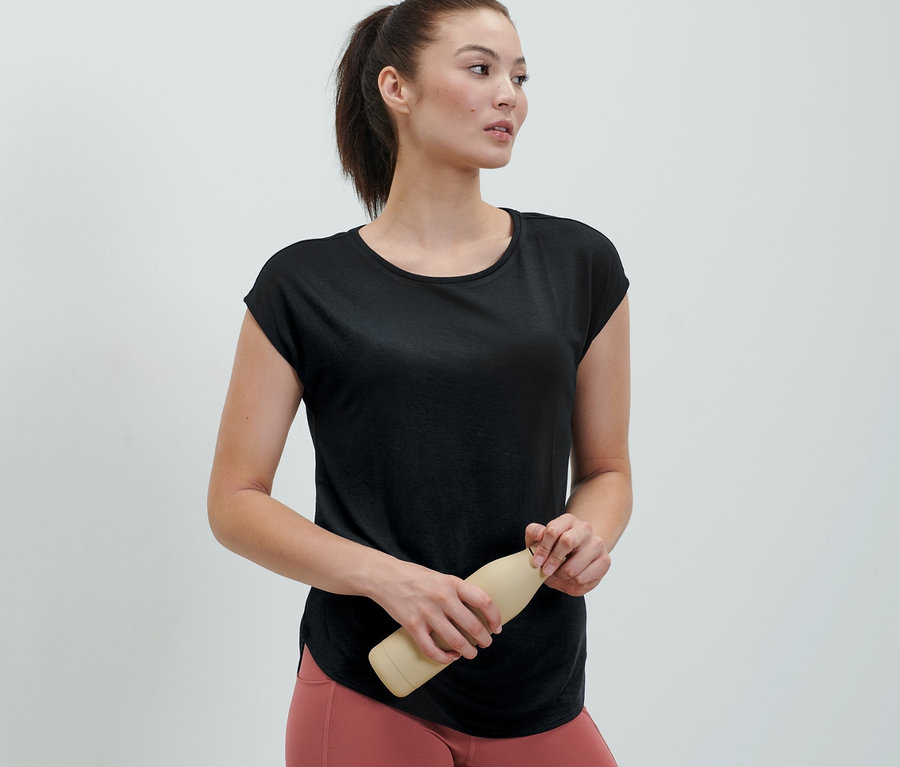 - Koszulka damska z zaokrąglonym dołem i dłuższym tyłem