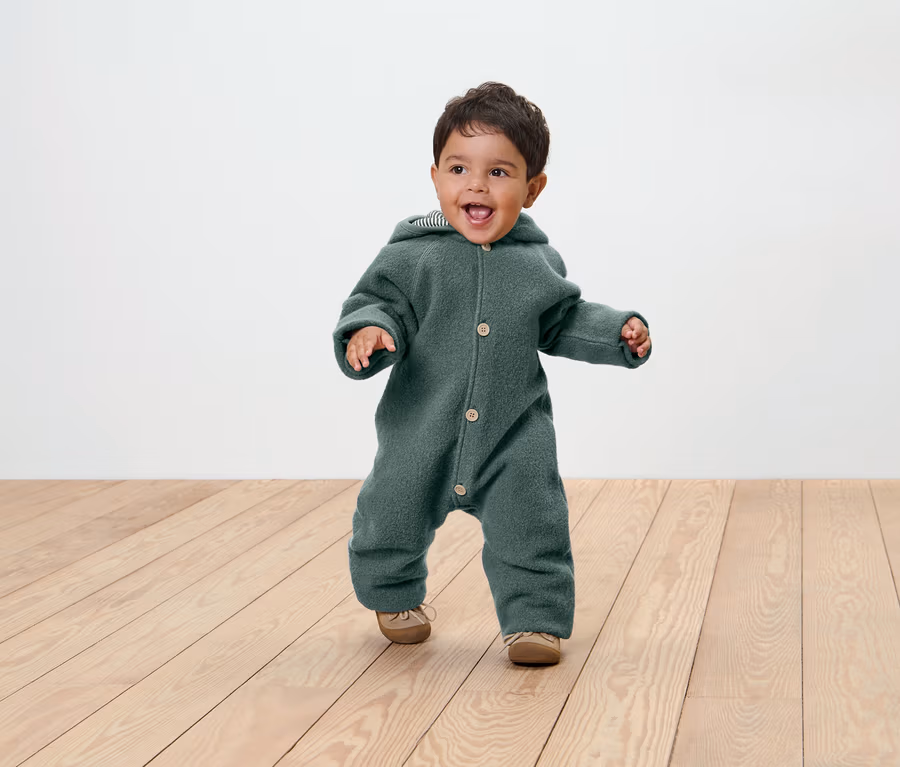 - Rozm. 50/56 – 74/80: zakończenia nogawek i rękawów z wywijanym brzegiem chronią ręce i stopy przed zmarznięciem