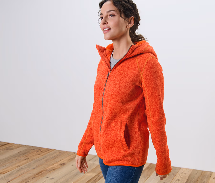 Bluza z kapturem z dzianiny polarowej, pomarańczowy melanż
