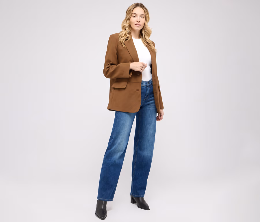 • Nowoczesny krój z szerokimi nogawkami i elastycznym jeansem