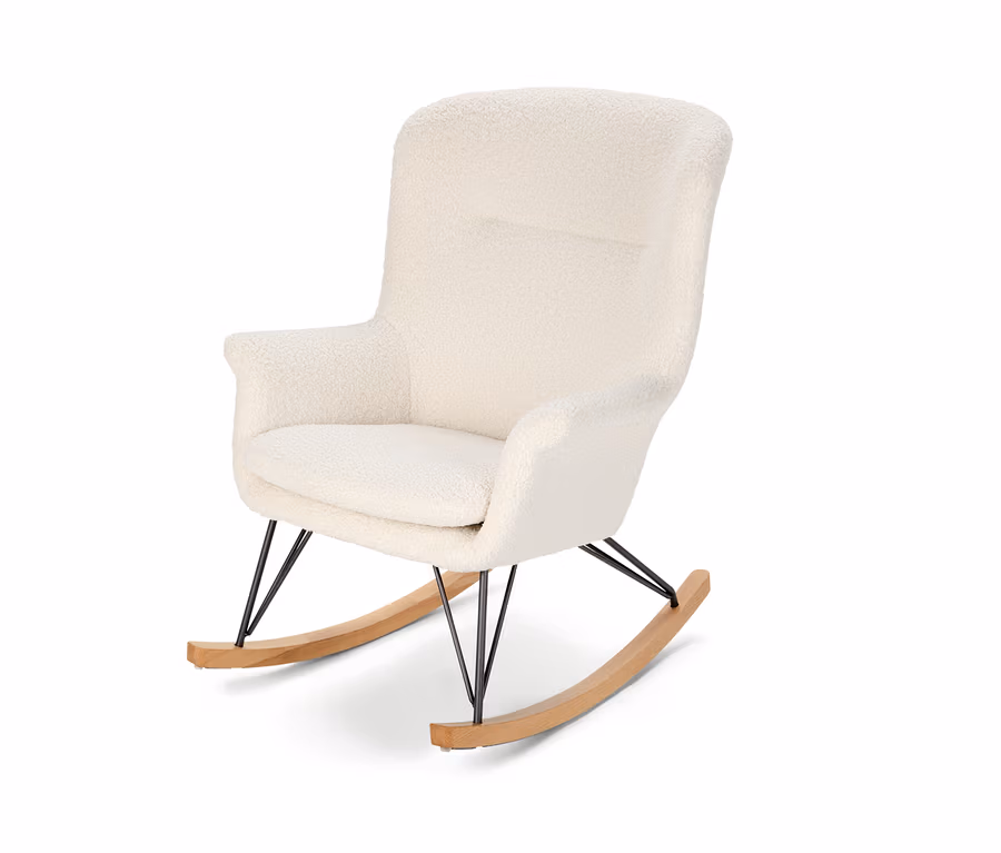 Fotel bujany z tkaniny bouclé