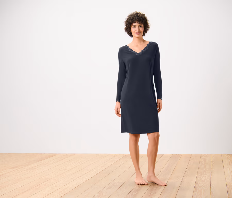 - Dekolt w serek i zakończenia rękawów obszyte delikatną koronką