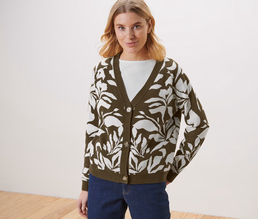 • Kardigan o modnym, lekko skróconym fasonie