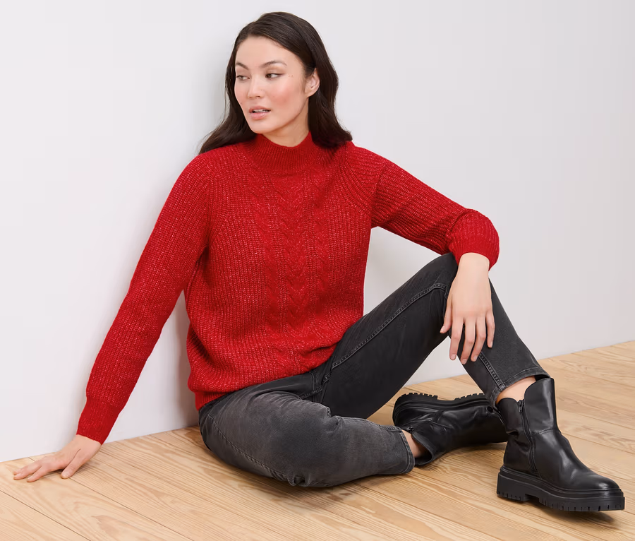 Sweter o grubym splocie z warkoczowym wzorem