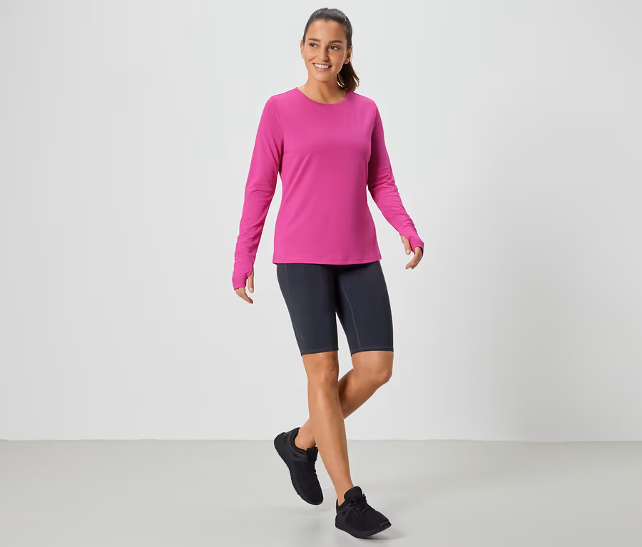 - Okrągły dekolt i rękawy raglanowe z otworem na kciuk