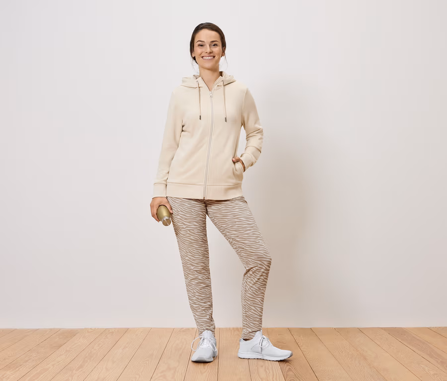 Spodnie dresowe, beżowo-białe
