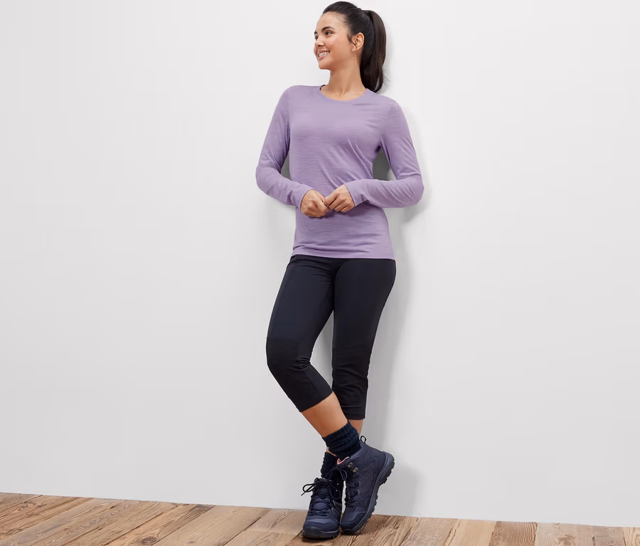 Koszulka z długim rękawem z wełną merino, liliowa