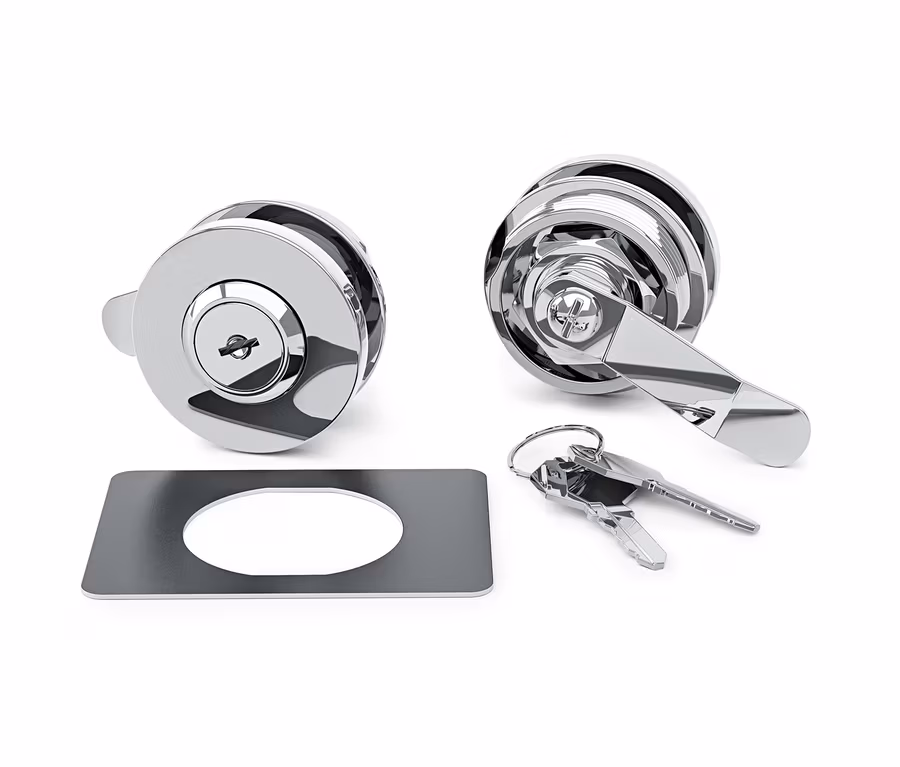 - Zamek z kluczem jako uzupełnienie do pojedynczych drzwi o szerokości do 40 cm i do wszystkich klap szafek z naszej kolekcji mebli metalowych »CN3«