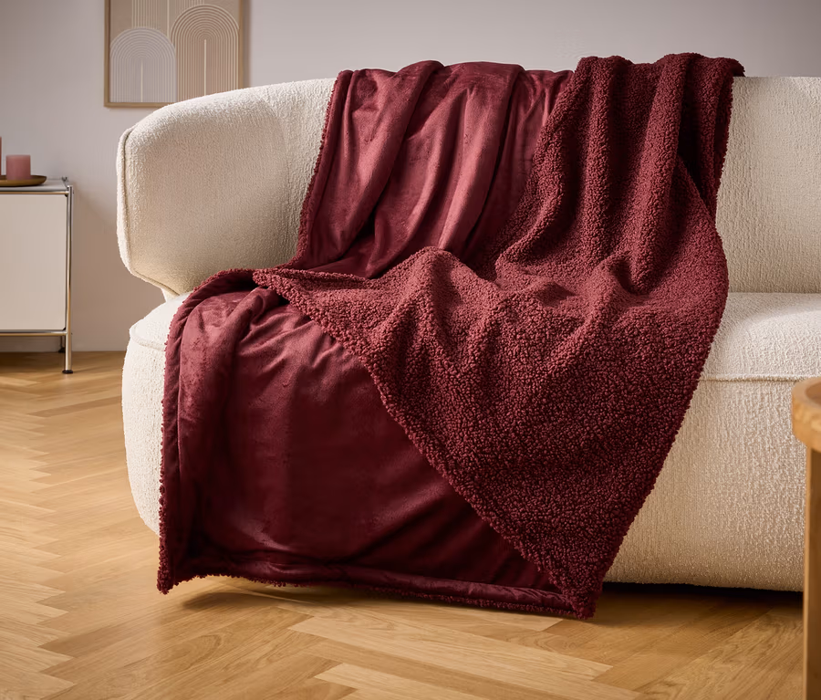 - Miękki, przytulny koc w kolorze czerwonym