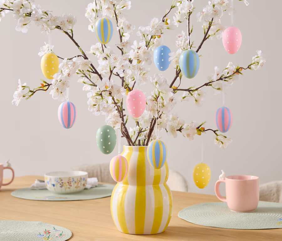 Zawieszki z pisankami, 12 sztuk, w paski