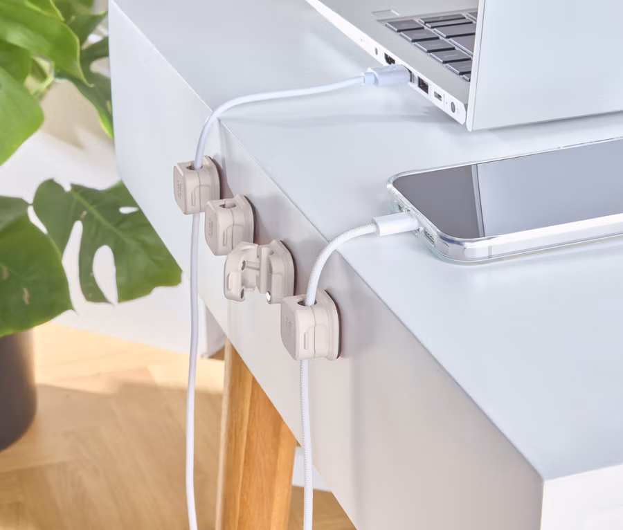 - Organizery do kabli z samoprzylepną podkładką z tyłu do przymocowania np. do biurka