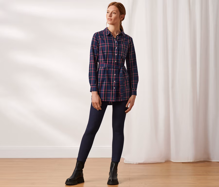 Długa bluzka w kratkę z flaneli