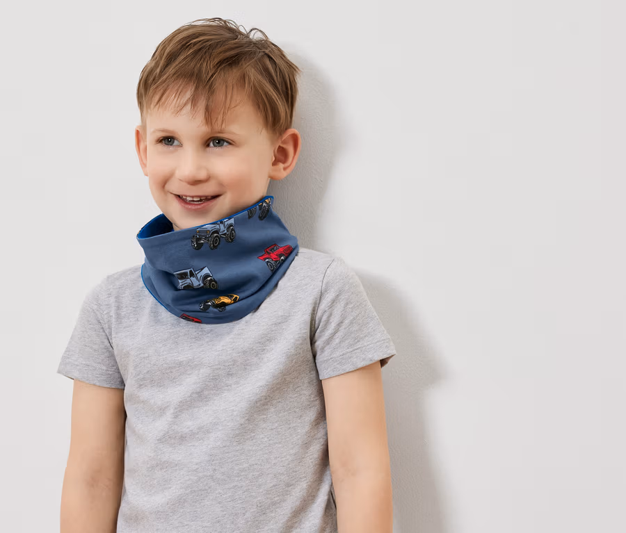 - Granatowy z wielobarwnym nadrukiem w monster trucki na całej powierzchni