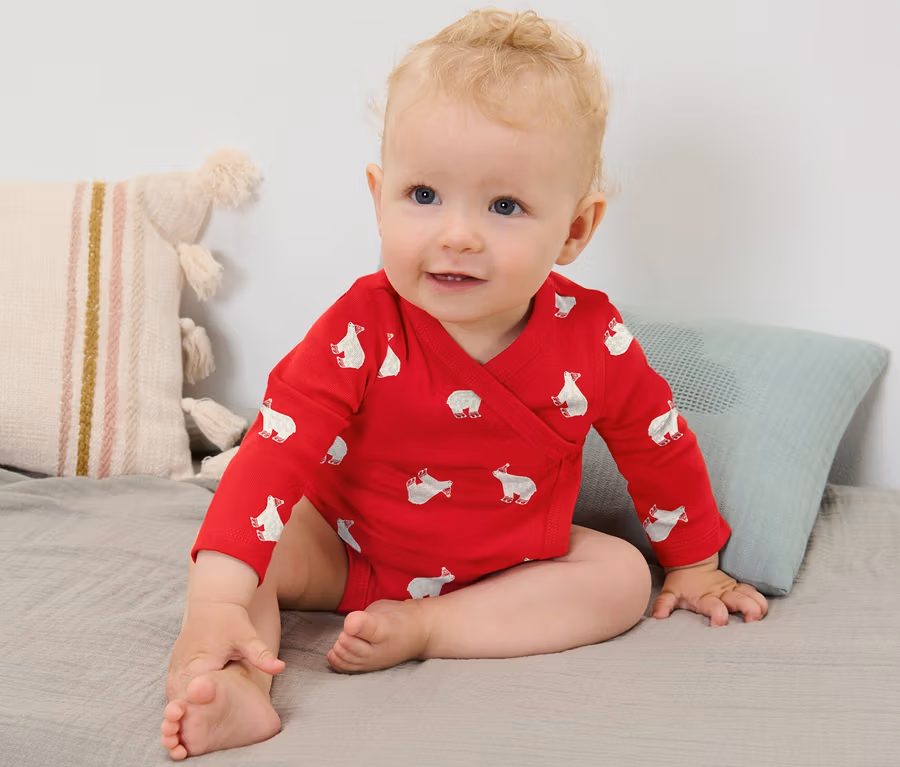 - Rozm. 74/80–98/104 wkładane przez głowę: guziki zatrzaskowe w kroku ułatwiają wkładanie i zdejmowanie
