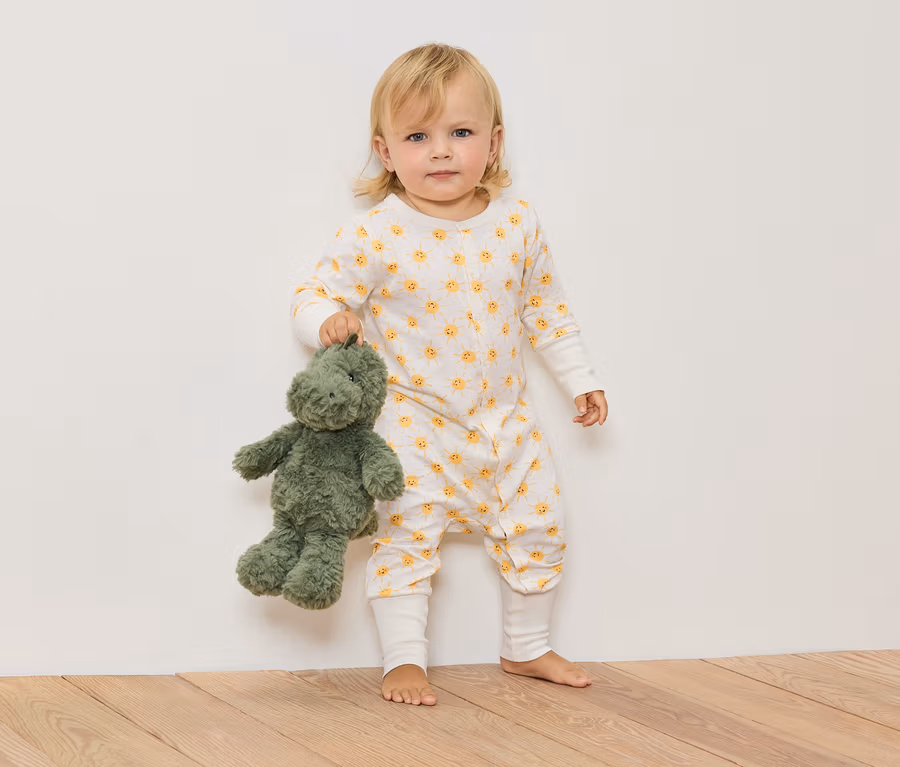 - Rozm. 50/56–62/68 z wywijanymi ściągaczami na zakończeniach rękawów i nogawek