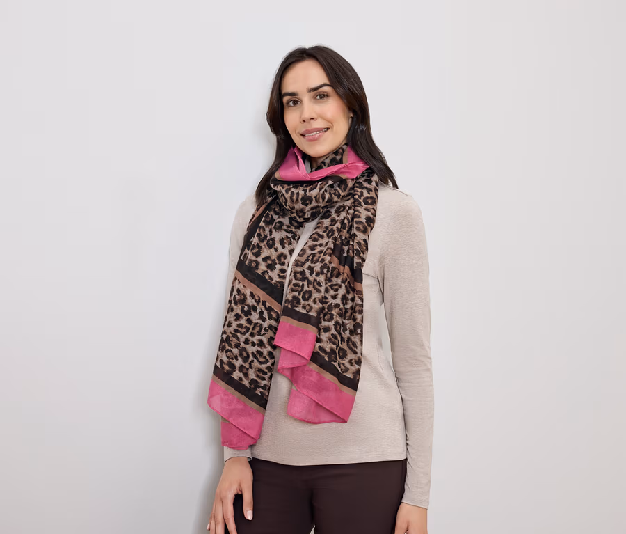 - Beżowa w czarno-brązową panterkę na całej powierzchni