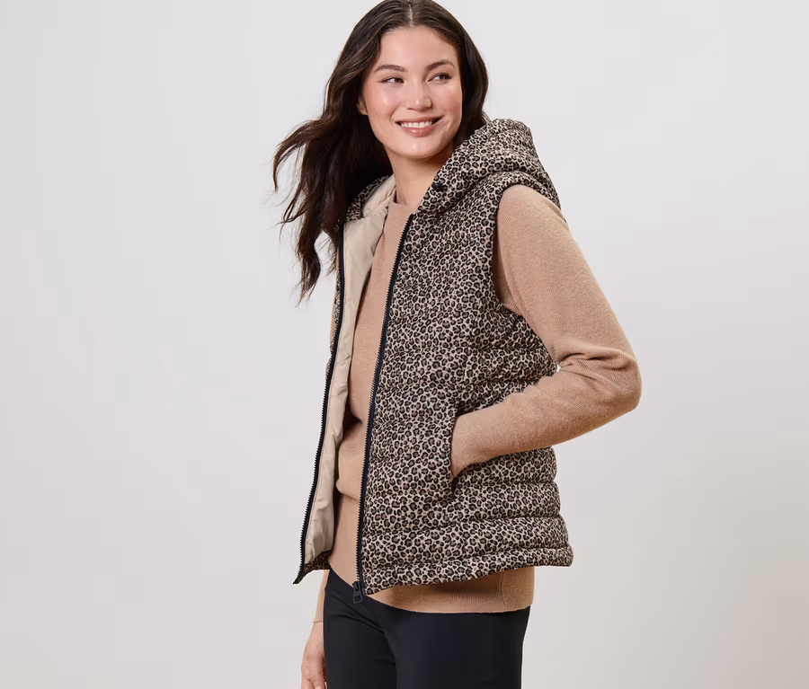 Wzorzysta pikowana kamizelka z kapturem