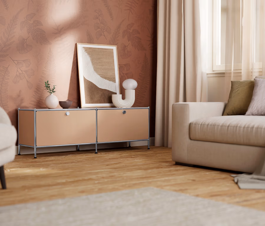 Metalowa szafka typu lowboard „CN3” z klapami, toffi