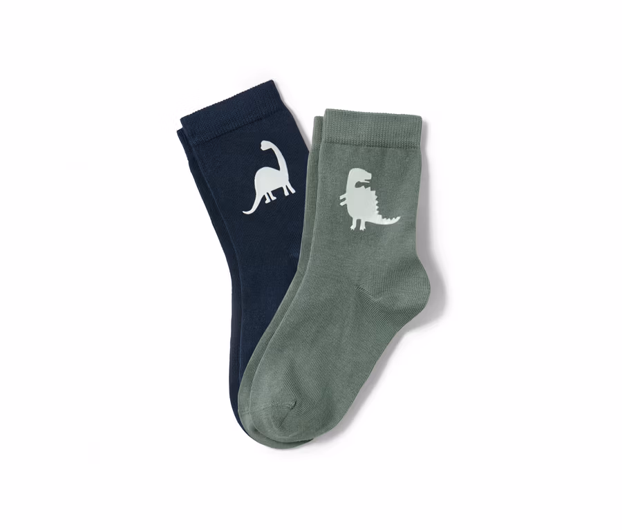 1x granatowe z fluorescencyjnym motywem dinozaura, 1x szarozielone z fluorescencyjnym motywem dinozaura
