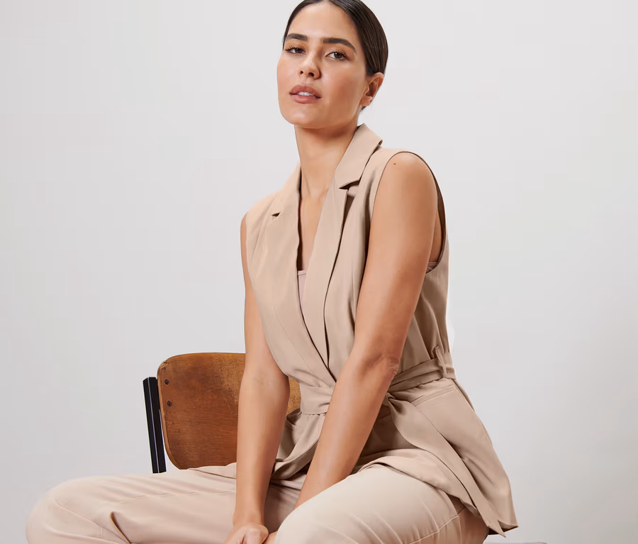 - Ta kamizelka zawiera włókna ze zrównoważonego drewna.