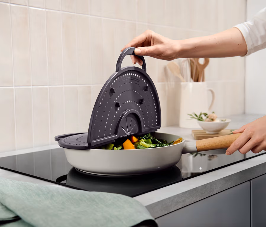 - 4 w 1: osłona na patelnię, podkładka do pieczenia, podstawka pod garnki oraz osłona do przecierania i miksowania