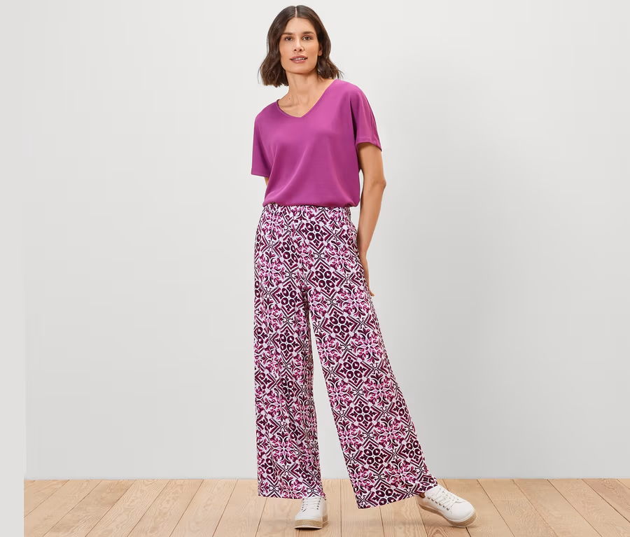 Wzorzyste spodnie palazzo, jagodowe