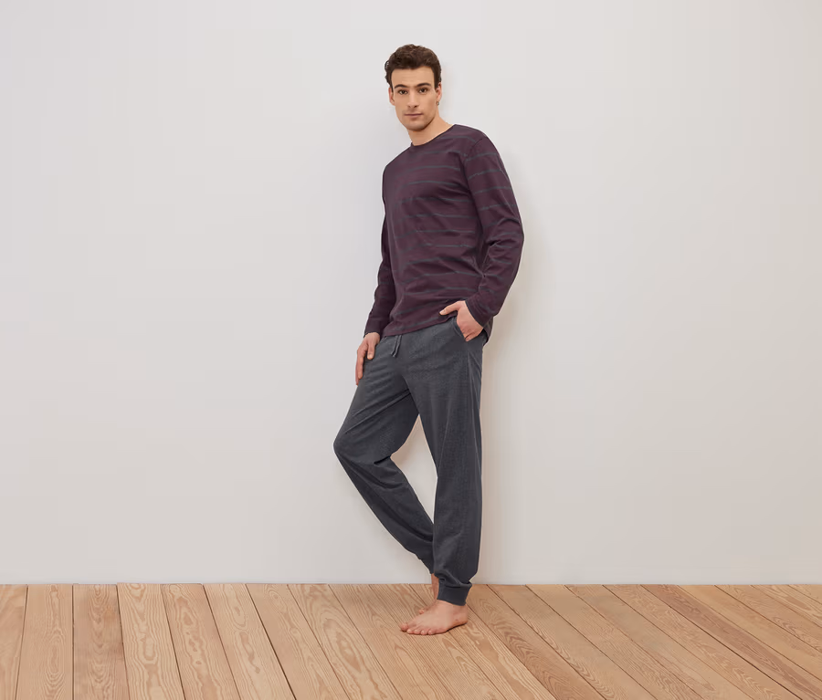 - Piżama męska z miękkiego pojedynczego dżerseju z czystej bawełny