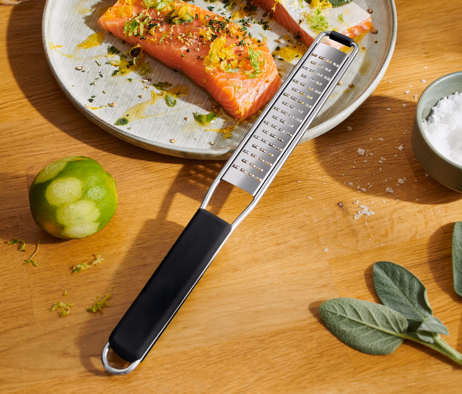 - Pałąk ze stali nierdzewnej z antypoślizgową osłoną silikonową – idealny do opierania na blacie lub misce