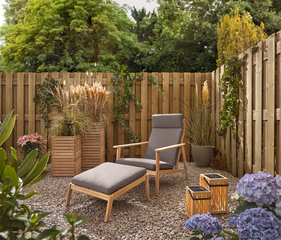 Wygodny fotel ogrodowy z wysokim oparciem i podnóżkiem