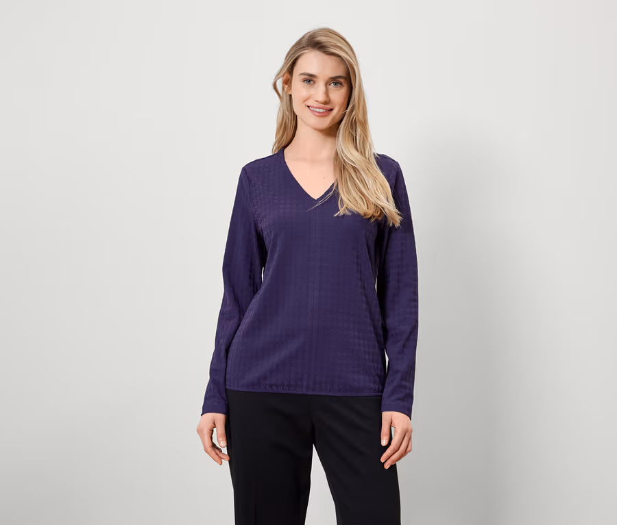 Koszulka z długim rękawem ze strukturą, śliwkowa
