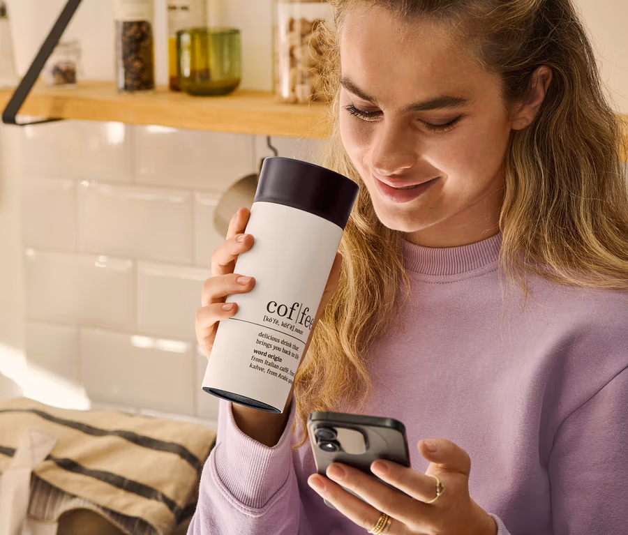 Pyszna kawa gdziekolwiek jesteś: Ten kubek dzięki podwójnym ściankom sprawia, że napoje na dłużej zachowują wysoką lub niską temperaturę. Dlatego idealnie nadaje się na Twoją ulubioną kawę. Praktyczny otwór do picia 360° i możliwość obsługi jedną ręką sprawiają, że ten kubek będzie idealnym towarzyszem każdej podróży.