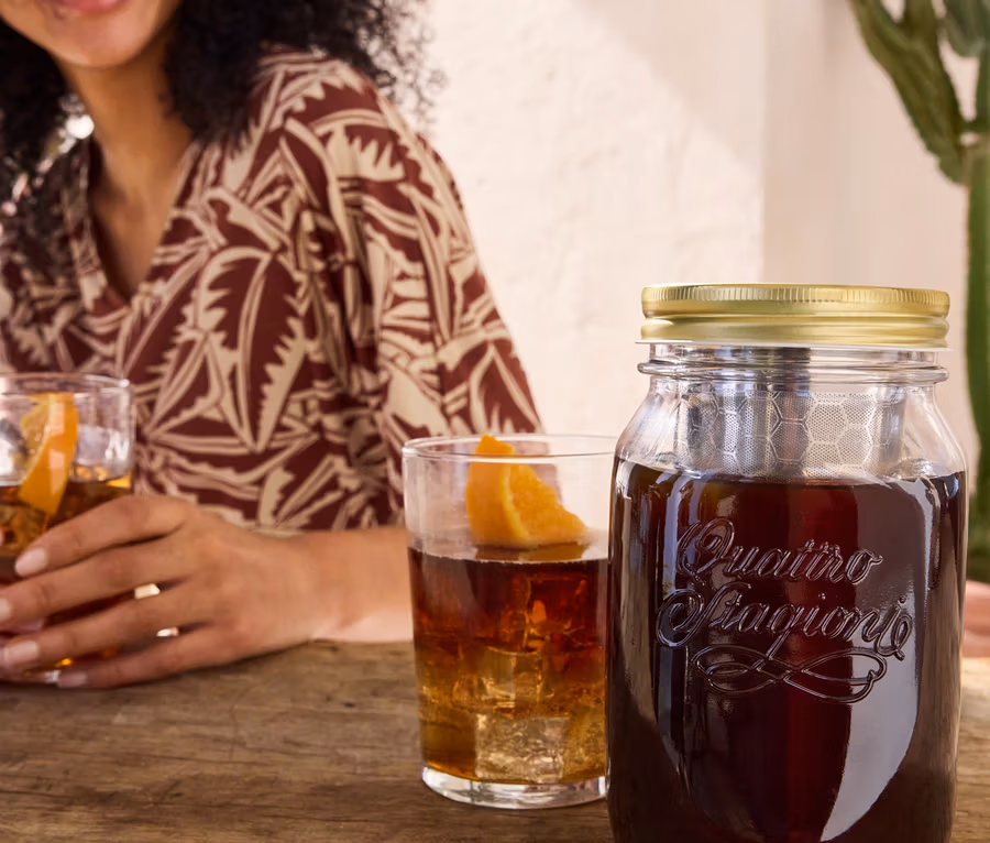 Szkło Quattro Staggioni to sprawdzony klasyk włoskiej produkcji. Dzięki silikonowemu pierścieniowi słoik zamyka się hermetycznie – nawet z włożonym filtrem. Dzięki temu kawa Cold Brew szczególnie długo zachowuje świeżość i może być bezpiecznie przechowywana. Wszystkie elementy są łatwe w czyszczeniu i mogą być myte w zmywarce do naczyń.