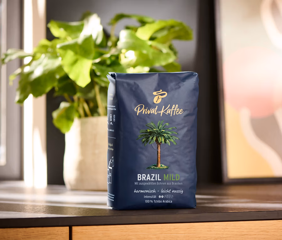 Kawa brazylijska znana jest ze swojego szczególniej aksamitnego smaku. Ziarna Tchibo Arabica dla kawy Privat Kaffee Brazil Mild uprawiane są w Ameryce Łacińskiej, gdzie dojrzewają w wyjątkowo łagodnym klimacie w gliniastej glebie bogatej w minerały. Brazylia to największe państwo Ameryki Południowej i zarazem największy światowy producent kawy. Okres zbiorów trwa od maja do sierpnia. Aby stworzyć mieszankę Brazil Mild, nasi eksperci wybierają jedynie najlepsze brazylijskie kawy – Tchibo Arabica. Ich ziarna dojrzewają w słonecznych regionach Brazylii na wysokości do 1000 metrów nad poziomem morza. Ta szczególnie łagodna kawa zawdzięcza swój smak umiarkowanemu klimatowi ze stałymi temperaturami za dnia i w nocy oraz bogatej w składniki odżywcze laterytowej glebie. Ciesz się delikatnie orzechowym smakiem tej wyjątkowej kawy.